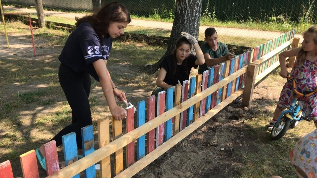 В этом году ребята посетили и наш детский сад, ежедневно они выполняют непростые задачи по благоустройству детских прогулочных участков.