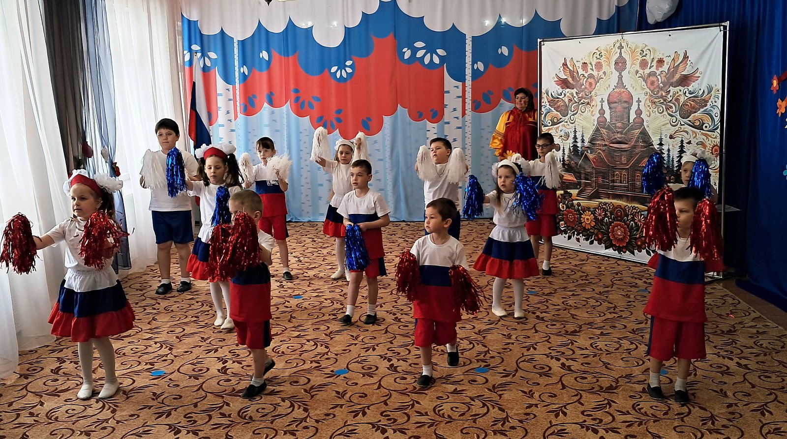 Ученицы 9‑го класса Ляховской школы Юлдашева Дарья исполнила патриотическую песню о России, тем самым наполнив зал особой атмосферой единства и любви к Родине, добавив празднику душевного тепла и торжественности.