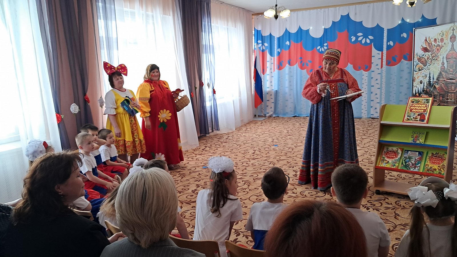Особую атмосферу празднику создали почётные гости: коллеги из других детских садов Меленковского муниципального округа, представители администрации, а также библиотекарь Ляховского сельского филиала МБУК «ЦБС Меленковского муниципального округа» Дарьина С. А. Она провела для детей увлекательную викторину по русским народным сказкам и пригласила всех посетить библиотеку, пообещав познакомить с самыми удивительными книгами.