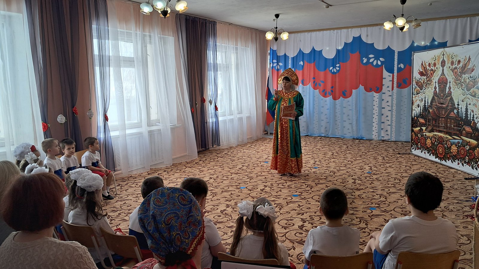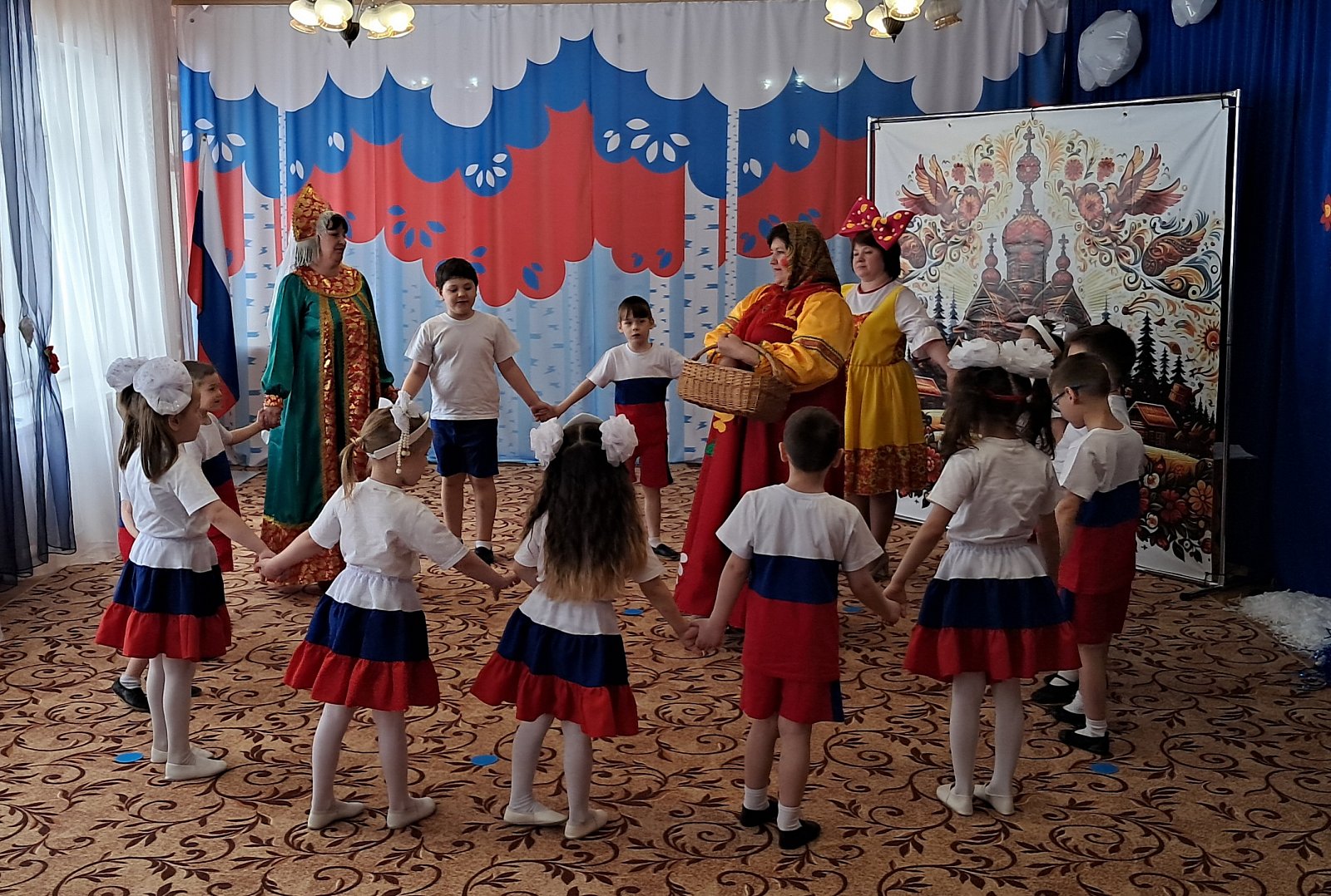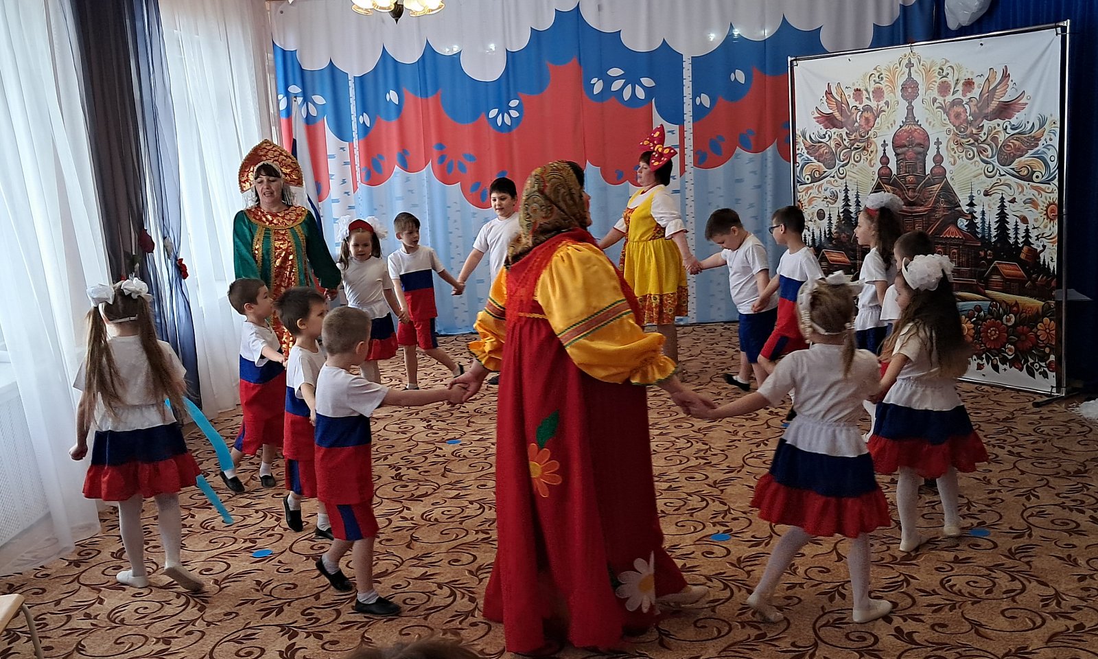 Ребята вместе со сказочными героями — Василисой Премудрой, Матрёшкой и Буквоешкой — с восторгом погрузились в мир родной речи. Они играли в русские народные игры, такие как «Заря‑заряница», с азартом продолжали пословицы, демонстрируя смекалку, и участвовали в познавательных викторинах, где каждый смог проявить свои знания.